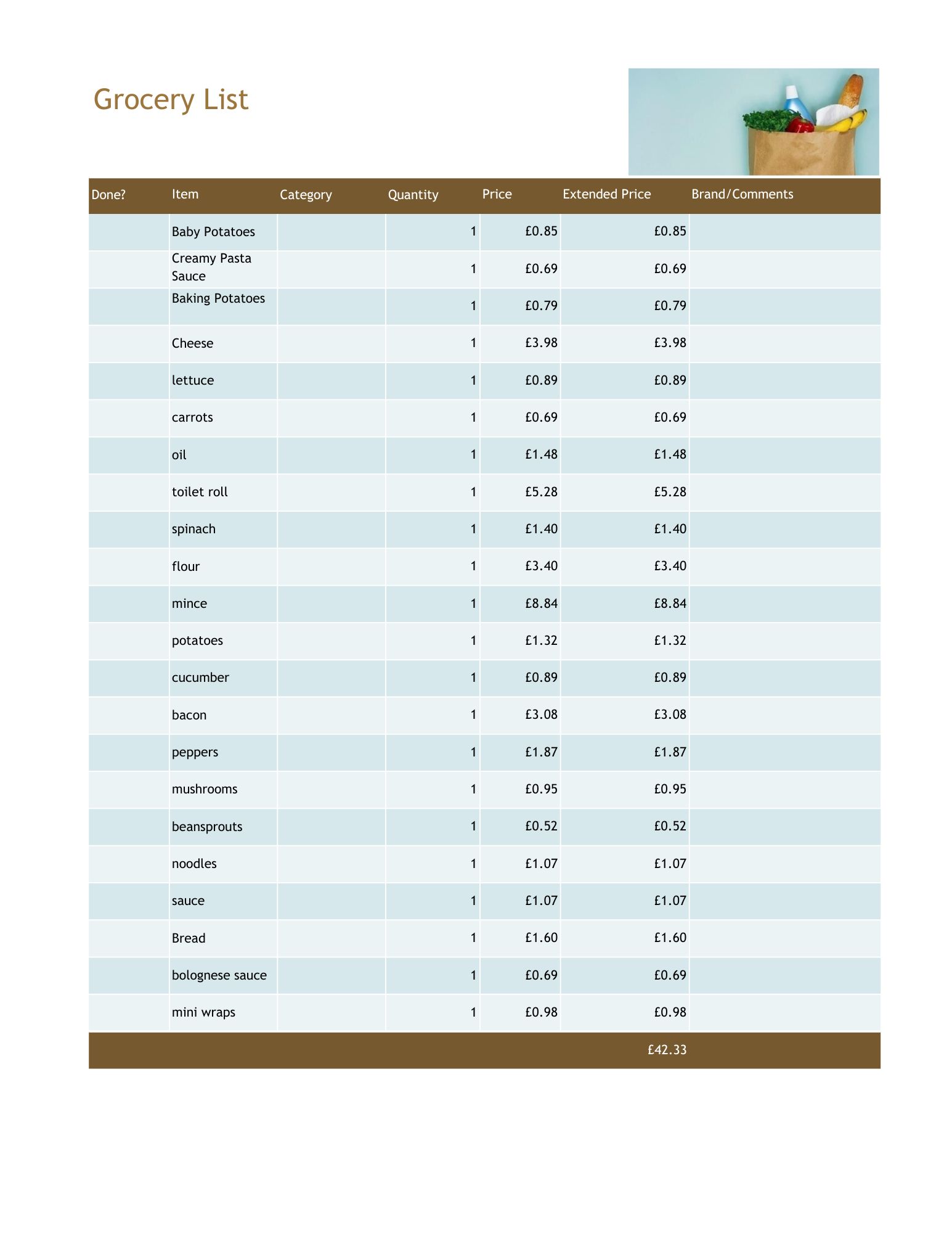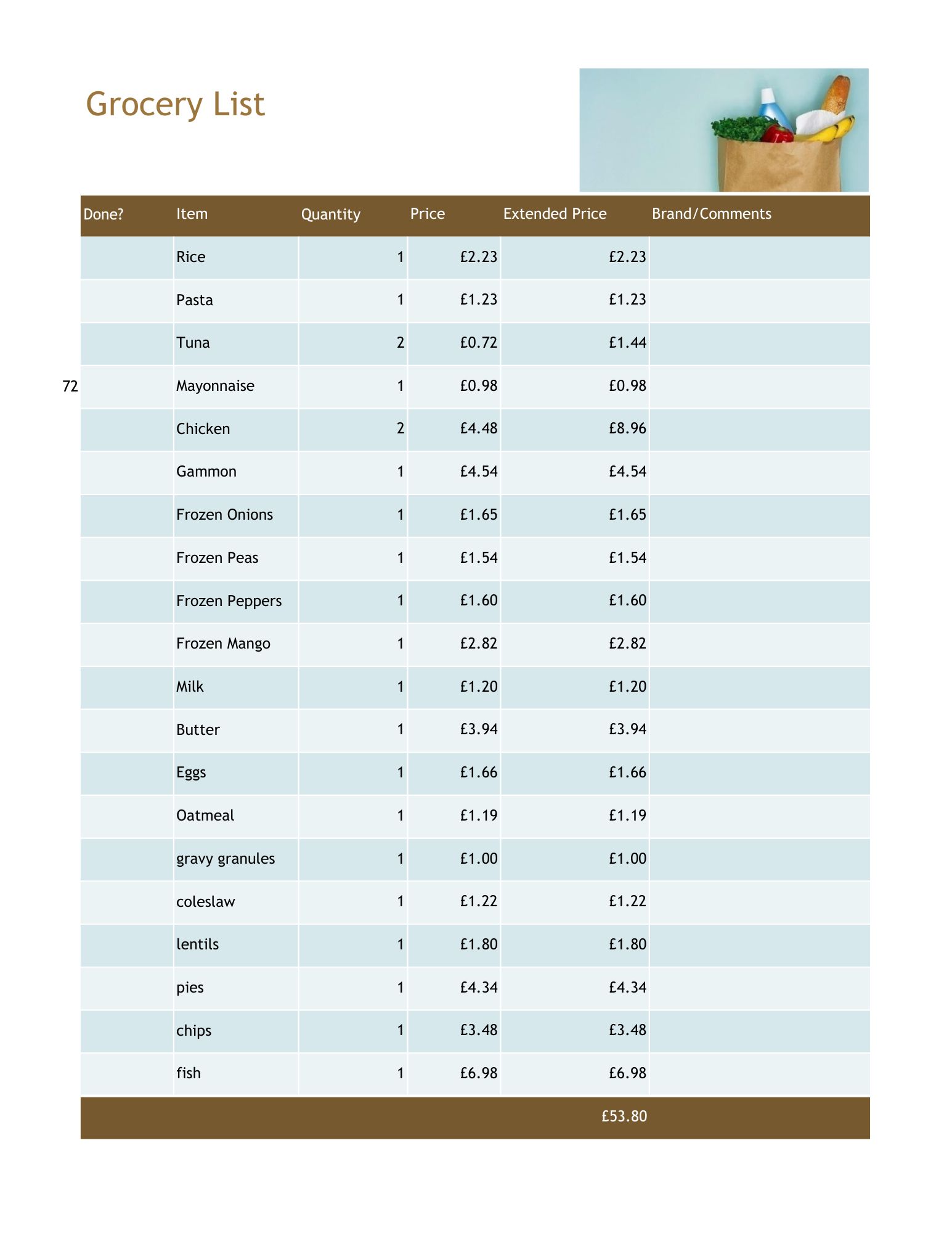 Starting Out Shopping List – A list of very basic shelf stable items great for those who are starting in a new place. With basic shelf stable foodstuffs and basic household items, this is enough for someone to move in somewhere and get through the first few days.